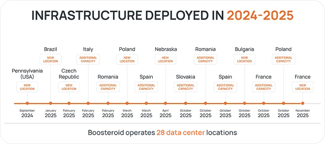 Boosteroid’s ability to sustain its growth trajectory depended directly on its capacity to expand its physical infrastructure. As the user base expanded at an accelerated rate, the company reached a critical point where its existing server capacity and expansion rate were becoming insufficient to support new and current players. This situation created pressure to deploy new servers quicker to manage the growth.